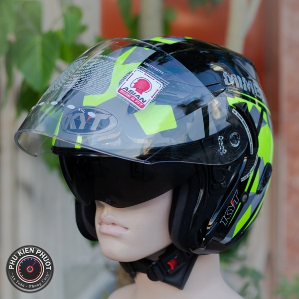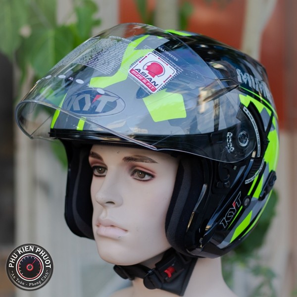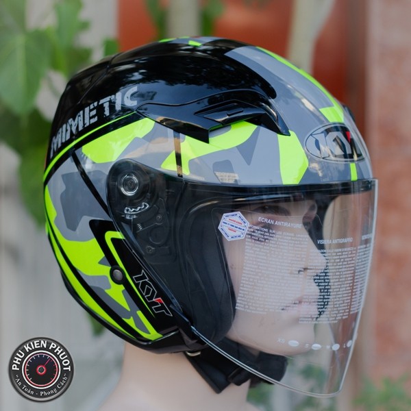Nón bảo hiểm KYT Mimetic fluo Gloss chính hãng được thiết kế rất đẹp , được phối màu rất ấn tượng , bộ tem của nón đa số được thiết kế dựa trên các mẫu tem của Moto GP , Moto 2 của các tay đua . Nón 3/4 2 kính được thiết kế thông thoáng , lót dễ dàng tháo rời để vệ sinh .