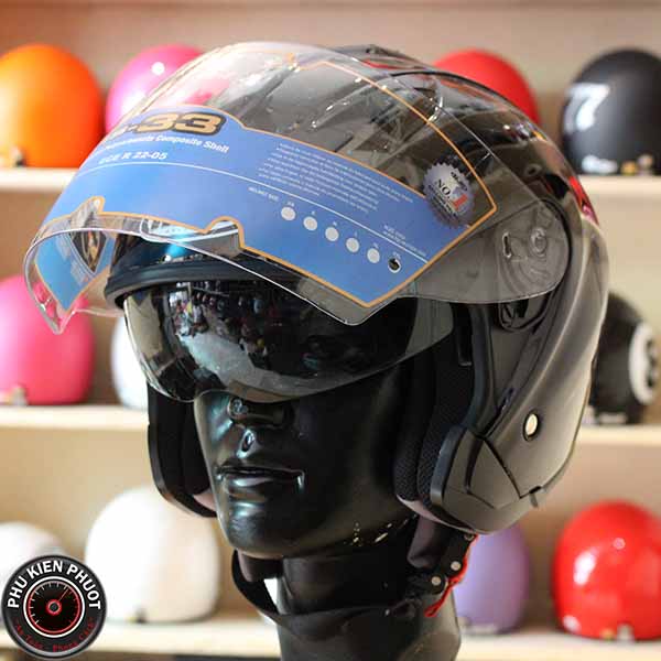 - Mũ HJC IS33 gồm kính trong bên ngoài và kính mát bên trong chống tia UV