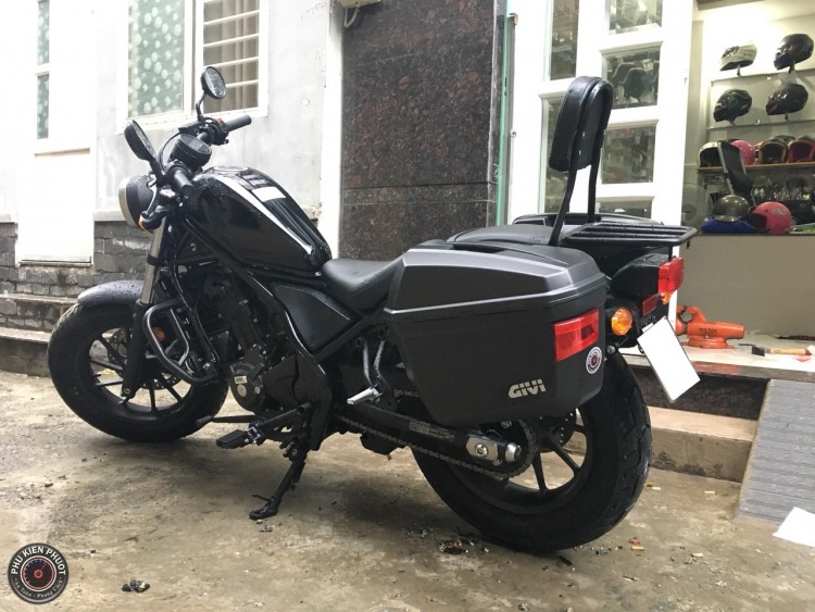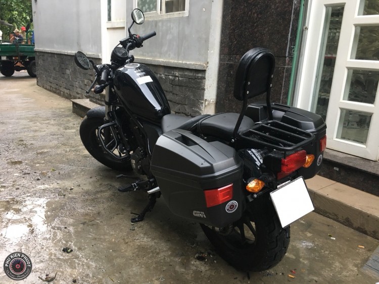 Rebel 300 muốn lên thùng cặp hông givi thật dễ dàng , chỉ cần ghé shop Phụ Kiện Phượt ngồi uống cafe và đợi 1 lúc là shop sẽ lên full thùng givi nhanh nhất , đẹp nhất có thể . ( Thùng givi xe rebel 300 , rebel 300 găn thùng givi , baga givi rebel 300 )