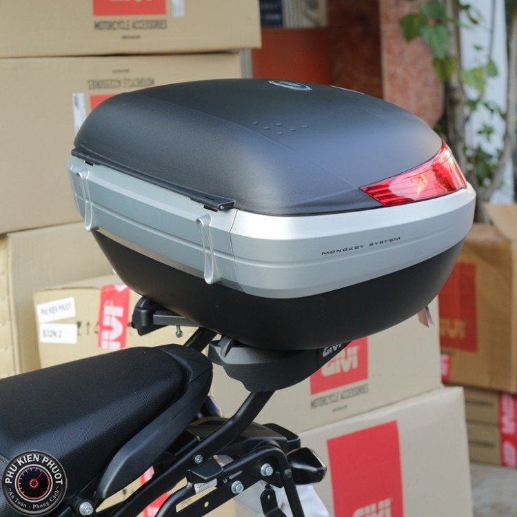 Lưu ý : Để gắn được thùng givi lên baga phải mua thêm đế thùng M5 ,M7 hoặc E251 ( Do đây là thùng givi sản xuất tại italia nên thùng không kèm để )