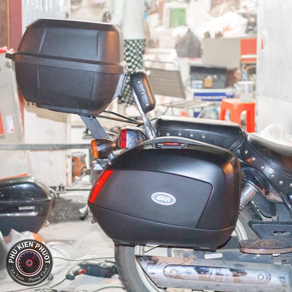 . Trước hết là cần phải mua mộtthùng cặp hông givi V35N , Thùng sau givi E43NMLBộ Khung 2 bên PLX gắn cho xe tại shop