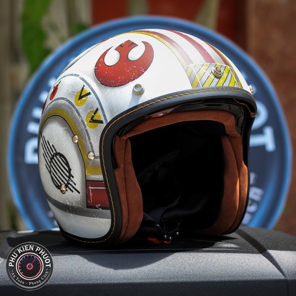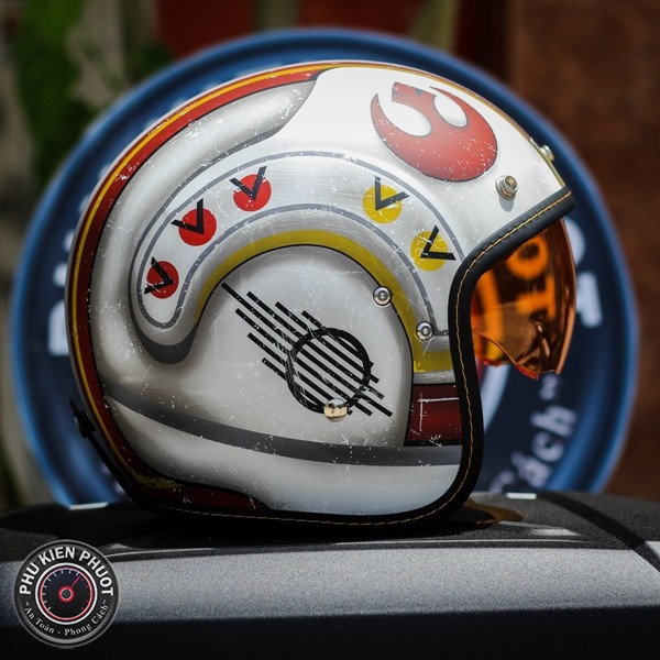 Nón bảo hiểm FG 70s star war được thiết kế theo phong cách cổ điển lấy từ cảm hứng của thập niên 70, nón có tích hợp kính dấu bên trong màu khói giúp đi nắng và chống tia UV. (Nón bảo hiểm hjc, mu bao hiem hjc, mũ bảo hiểm hjc)